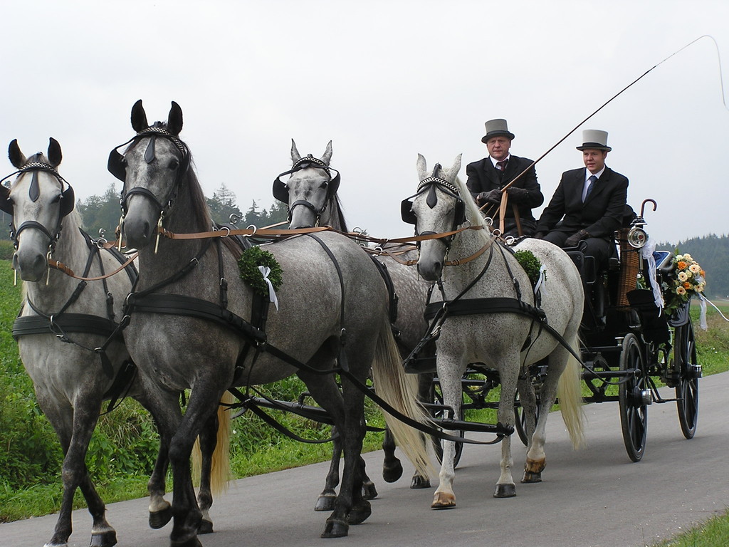 Mit zwei oder vier edlen Lipizzanern vor einer traumhaften Hochzeitskutsche ins Glück zu fahren, das lässt den Hochzeitstag zu einem unvergesslichen Ereignis werden.